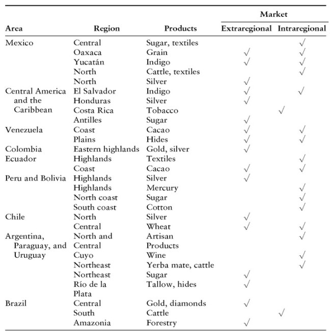 With time, commodity exports from Spanish America increased in importance and became more diversified. For example, we see agricultural exports expanding and linked to intraregional (trade within Spanish America) and extraregional trade (trade with Spain). The vast majority of production activities was controlled by the colonial private sector although there were some state monopolies as in the case of tobacco production and export.