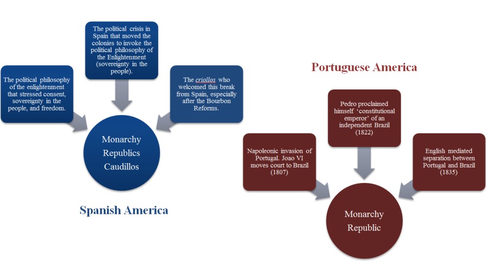 | Explain the impact the 17th Century Crisis and the rise of the Bourbons had on the Spanish Empire. Explain the factors that drove Spanish America towards the quest for independence. Explain how Brazil’s quest for independence differed than that of Spanish America. |