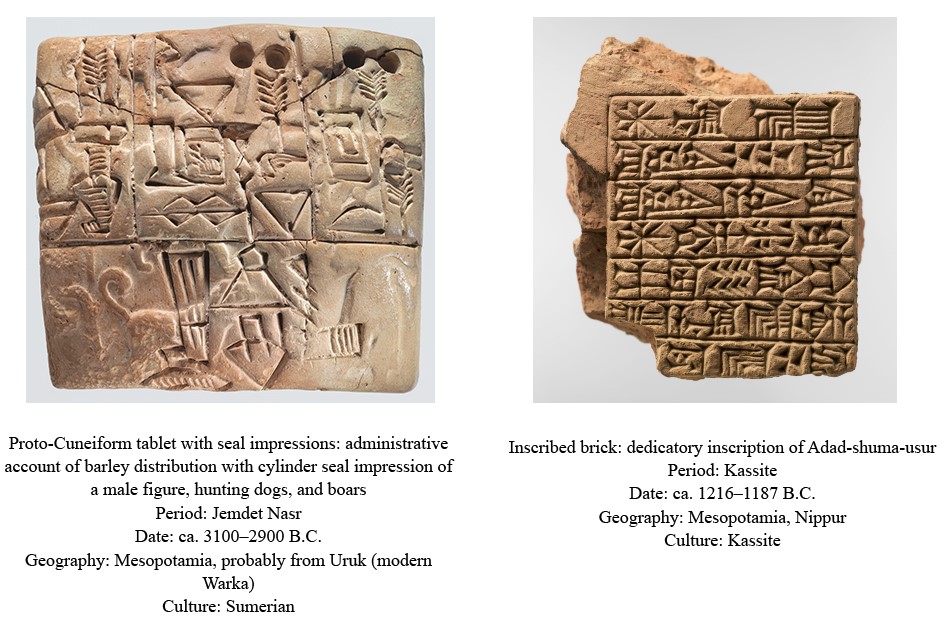 c. 3100 B.C.E. Cuneiform script, Mesopotamia; hieroglyphic script, Egypt