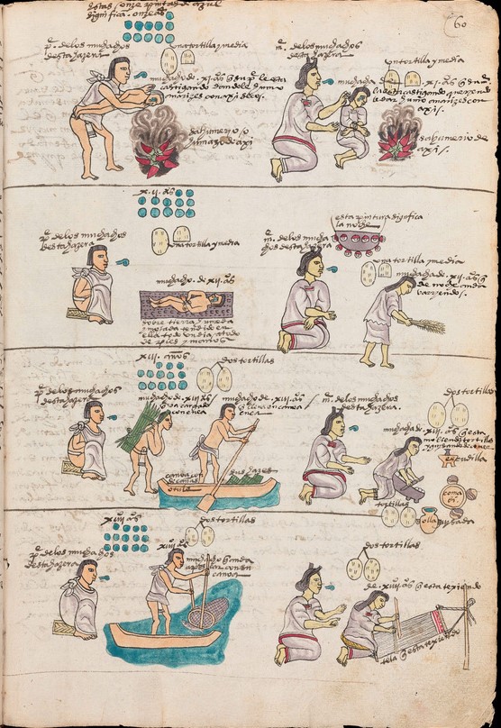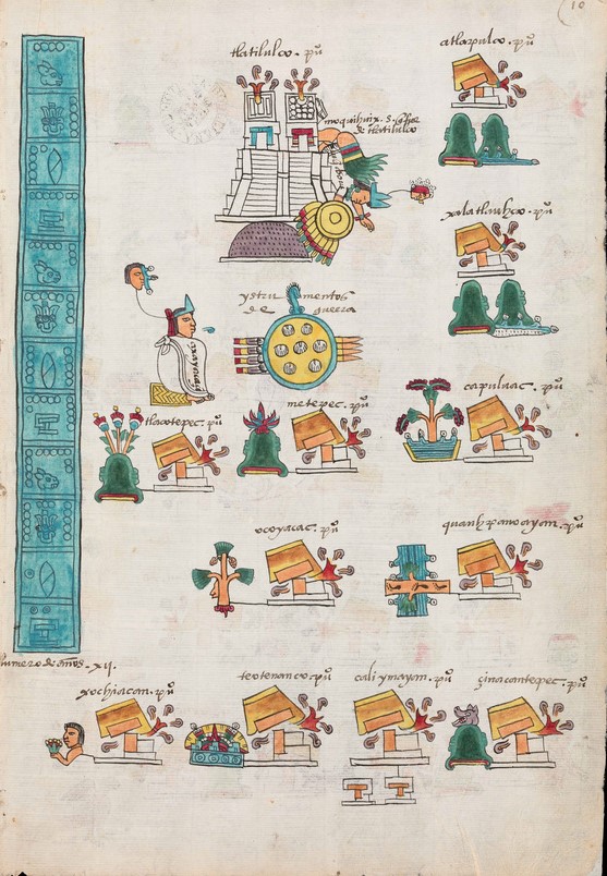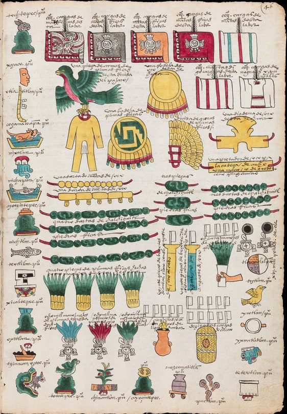 The Codex Mendoza combines pictorial representations with commentary in Nahuatl and Spanish. It documents the pre-colonial history of the Mexica, the tributes collected from subjugated altepetls (city-states), and an ethnographic account of Mexica society.