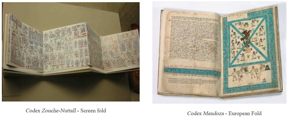 The surviving codices are categorized into those created before the European conquest and those written during the colonial era. Mesoamerican cultures utilized a variety of mediums for writing, including painted manuscripts, inscribed monuments, stone sculptures, deerskin, ceramic vessels, and more. The codices (painted manuscripts) produced by the Nahua, for instance, were made from amatl, a type of paper crafted from the inner bark of the Ficus cotonifolia (fig tree). Due to the thickness of this bark paper, Mesoamerican codices often took the form of screen-folds, such as the Codex Zouche-Nuttall. By contrast, codices created during the colonial period employed different paper-making techniques, leading to formats that more closely resembled books, as seen in the Codex Mendoza.