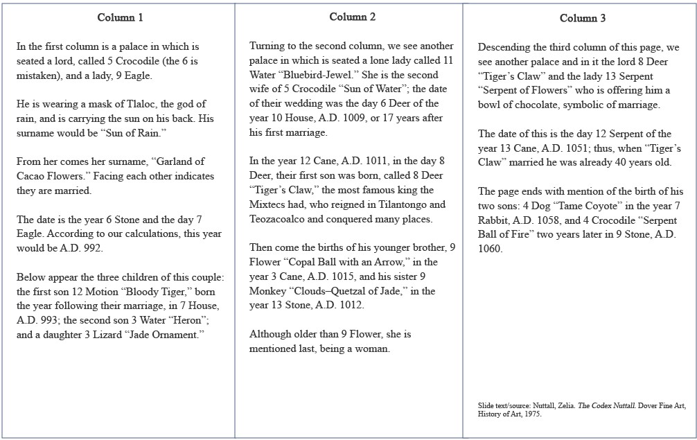 Mixtec writing was semasiographic in nature, relying on non-phonetic visual symbols to convey ideas and concepts. One of the most significant Mixtec codices is the Codex Zouche-Nuttall, a screen-fold manuscript made up of 47 deerskin leaves, now housed in the British Museum. This codex chronicles the history of key centers in the Mixtec region, as well as the genealogy, marriages, and political and military achievements of the Mixtec ruler 8 Deer Jaguar-Claw. A prominent figure in Mixtec history, 8 Deer Jaguar-Claw was the second ruler of the second dynasty of Tilantongo and lived from 1011 C.E. to 1063 C.E.
