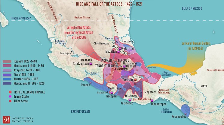 Around 1371, Tezozomoc (Tezozomoctli) became the ruler of the Tepaneca, a neighboring community to the Mexica. Written sources depict him as a pragmatic and ambitious leader who spearheaded the expansion of the Tepaneca in central Mexico. His aggressive expansionist policies ignited regional conflict, as documented in the Annals of Cuauhtitlan. In response to the growing threat posed by the Tepaneca, the altepetl of Tenochtitlan, Tlacopan, and Tetzcoco formed an alliance in 1427. This coalition ultimately defeated the Tepaneca, laying the foundation for what is now known as the Aztec Empire, or the Empire of the Triple Alliance—a confederation of these three altepetl.