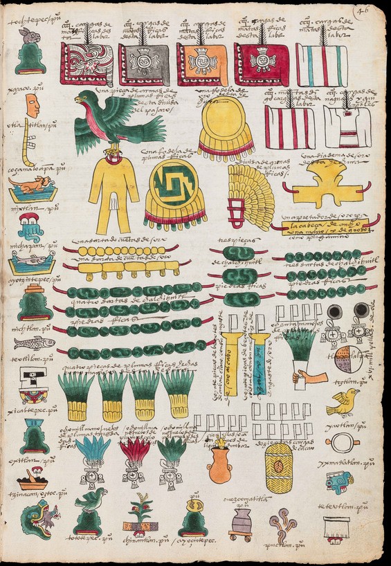 The pochteca were guild- merchants who traded on an “international” level. In other words, they traded in markets outside the boundaries of the Empire of the Triple alliance. It was the pochteca who moved luxury items such as gold items, tropical bird feathers, herbs, jade, etc . . . The tlanecuilo were regional merchants who traded in foodstuffs and utilitarian items. These included maize, chili, turkeys, sandals, and baskets. Some historians argue that Nahua merchants may have also served in a reconnaissance role for the state. Scholars believe the Mexica bartered in marketplaces. However, the Mexica also had a form of currency based on cacao beans and cotton textiles. Cacao beans were used for small purchases. Quachtli, cotton capes of standardized sizes with an attached cacao bean value (65, 80, or 100), were used for larger purchases.