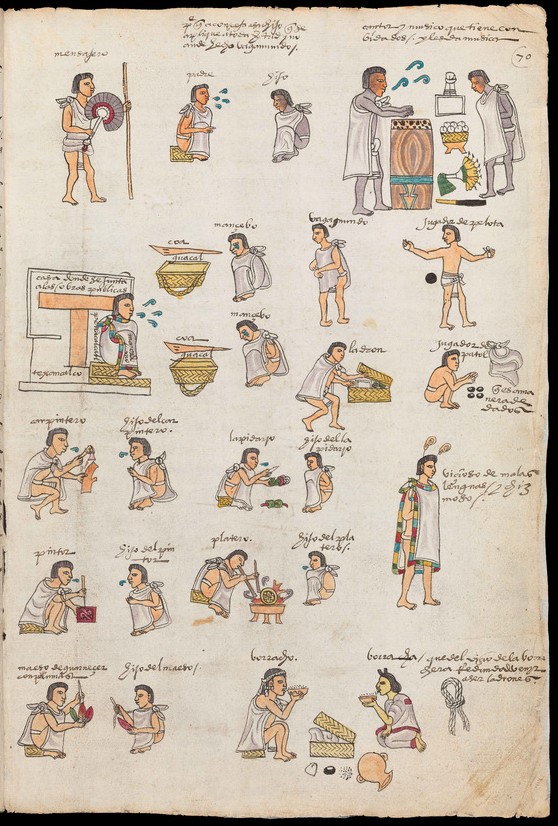 The Florentine Codex, or The General History of the Things of New Spain, a post-Columbian source was written by Nahua scribes under the direction of the Franciscan monk Bernardino de Sahagún. This colonial composition consists of information about Nahua life before the arrival of the Spanish. It is a source used by scholars to learn about ritual human sacrifice and heart sacrifice. Below is a fragment from this work describing the ritual of the heart sacrifice.