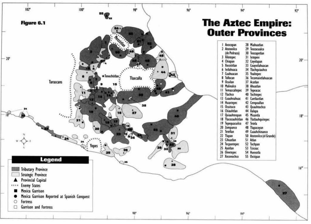The Empire of the Triple Alliance also established strategic provinces in the outer fringes of the empire. These provinces were made up of altepetl that were treated more like allies. They were not assessed a tribute quota. Their responsibility was to provide military defense against enemies of the Empire of the Triple Alliance such as the Tlaxcalans and Tarascans.