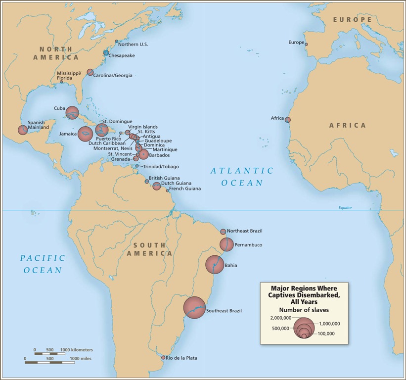| “First, the region witnessed a demographic catastrophe in the wake of European colonialism that decimated millions of indigenous people, forcing colonists to look elsewhere for productive labor. Second, Portugal had a preexisting slave trade to Europe and other African regions, which enabled Portuguese traders to deliver enslaved Africans to the Americas. Third, the slave trade to Latin America reflected the region’s place in the early modern global economy, which was largely defined by the massive production of agricultural commodities for export to Europe.“ |