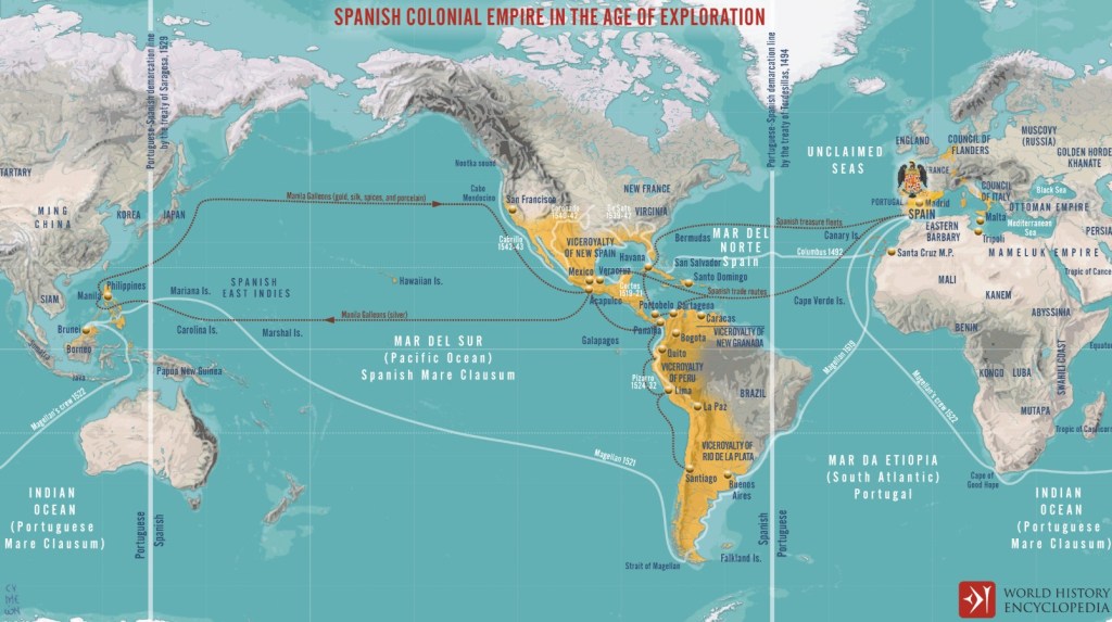 | INTRODCUTION Spain’s Atlantic expansion began with the occupation of the Canary Islands in 1480, sparking conflict with Portugal until the Treaty of 1479 settled territorial disputes. This marked the start of Spain’s imperial ambitions, which accelerated with Christopher Columbus’s 1492 voyage, backed by Queen Isabel and King Ferdinand. The Capitulaciones de Santa Fe granted Columbus noble titles and economic incentives, solidifying Spain’s claim over newly discovered lands. Papal support, notably Pope Alexander VI’s Inter Caetera of 1493, reinforced Spain’s rights to these territories. Spain’s ambitions soon expanded to the mainland, culminating in Hernán Cortés’s conquest of the Triple Alliance in 1521. These conquests reshaped the Americas, setting the stage for European colonial rule. As you read this topic, reference our previous topic and consider the following: Do you see the manifestation of Spain’s medieval experience present in its early ventures into the Atlantic and Caribbean? What role and function did the Church play in the conquest and colonization of the Americas? Why and how were enslaved Africans brought to the Americas? LEARNING OBJECTIVES Analyze the motivations and geopolitical factors behind Spain’s Atlantic expansion in the Americas. Explain the role of religion and papal authority in legitimizing Spanish expansion. Assess the impact of Spanish colonization on indigenous populations and governance. Oxford History Timelines: West Africa | Caribbean | Brazil |